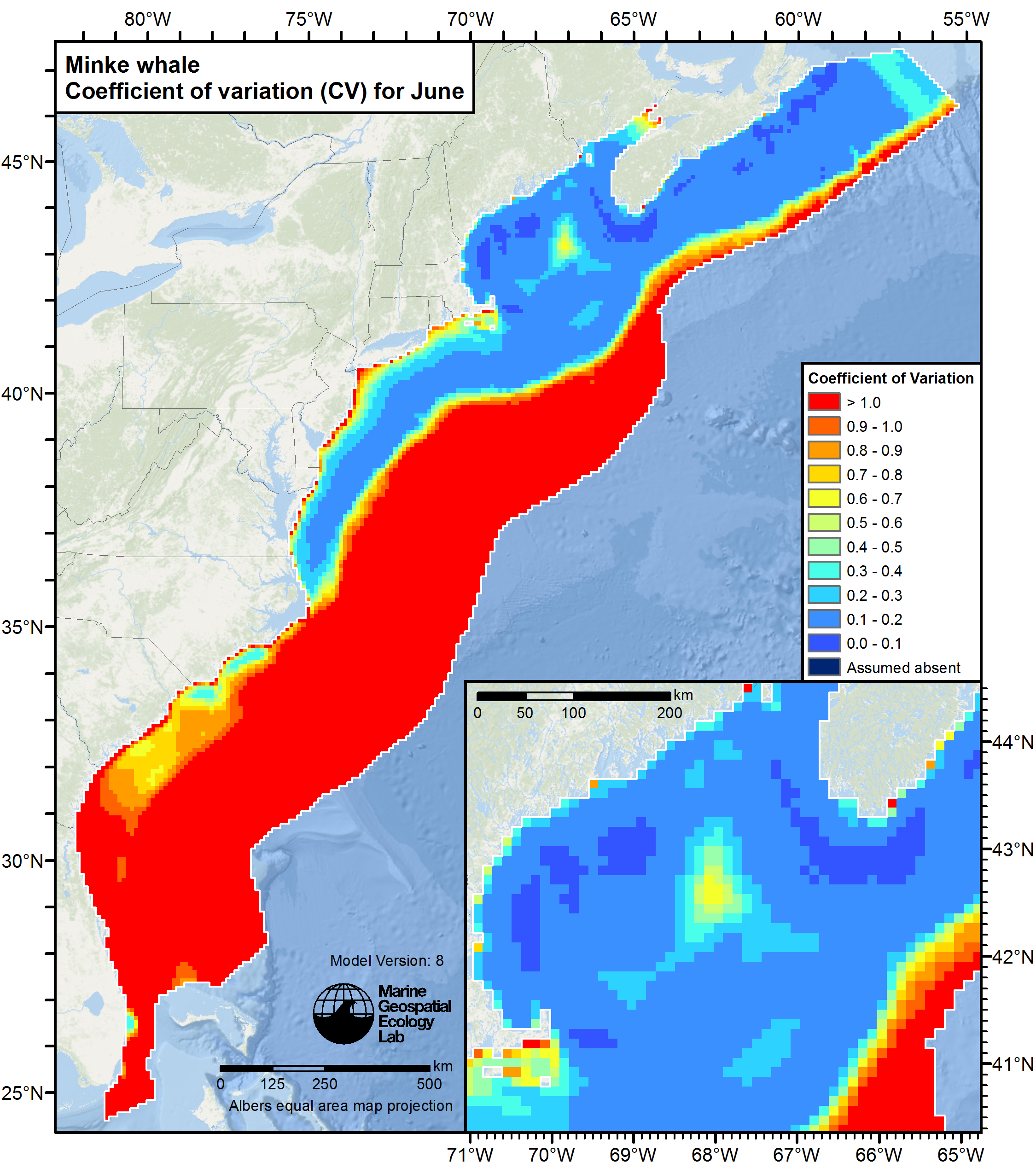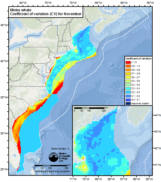 Modeled mean monthly density for January (larger version). (Credit: Roberts et al. 2016)Coefficient of variation for the mean monthly density for January (larger version). (Credit: Roberts et al. 2016)Modeled mean monthly density for February (larger version). (Credit: Roberts et al. 2016)Coefficient of variation for the mean monthly density for February (larger version). (Credit: Roberts et al. 2016)Modeled mean monthly density for March (larger version). (Credit: Roberts et al. 2016)Coefficient of variation for the mean monthly density for March (larger version). (Credit: Roberts et al. 2016)Modeled mean monthly density for April (larger version). (Credit: Roberts et al. 2016)Coefficient of variation for the mean monthly density for April (larger version). (Credit: Roberts et al. 2016)Modeled mean monthly density for May (larger version). (Credit: Roberts et al. 2016)Coefficient of variation for the mean monthly density for May (larger version). (Credit: Roberts et al. 2016)Modeled mean monthly density for June (larger version). (Credit: Roberts et al. 2016)Coefficient of variation for the mean monthly density for June (larger version). (Credit: Roberts et al. 2016)Modeled mean monthly density for July (larger version). (Credit: Roberts et al. 2016)Coefficient of variation for the mean monthly density for July (larger version). (Credit: Roberts et al. 2016)Modeled mean monthly density for August (larger version). (Credit: Roberts et al. 2016)Coefficient of variation for the mean monthly density for August (larger version). (Credit: Roberts et al. 2016)Modeled mean monthly density for September (larger version). (Credit: Roberts et al. 2016)Coefficient of variation for the mean monthly density for September (larger version). (Credit: Roberts et al. 2016)Modeled mean monthly density for October (larger version). (Credit: Roberts et al. 2016)Coefficient of variation for the mean monthly density for October (larger version). (Credit: Roberts et al. 2016)Modeled mean monthly density for November (larger version). (Credit: Roberts et al. 2016)Coefficient of variation for the mean monthly density for November (larger version). (Credit: Roberts et al. 2016)Modeled mean monthly density for December (larger version). (Credit: Roberts et al. 2016)Coefficient of variation for the mean monthly density for December (larger version). (Credit: Roberts et al. 2016)